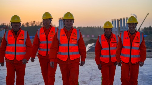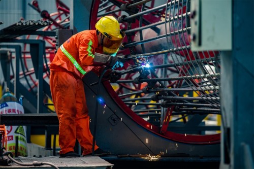 在黃河特大橋上施工的產業工人
